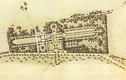 Park wokół pałacu (2 ha) został zaprojektowany przez Petera Josepha Lennégo, który stworzył sieć ścieżek obsadzonych drzewami wśród łąk pomiędzy stawem Düsterer Teich na północy a rzadkim lasem Katharinenholz przy parku Sanssouci. W 1858 Lenné zaproponował plan symetrycznego ogrodu w najbliższym sąsiedztwie pałacu, który został zrealizowany przez Gustava Meyera w listopadzie 1859.