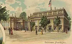 ![]() Pałac Monbijou, fasada południowa w 1739 r. | |