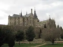 Aby nie opóźniać projektu poprosił biskupa o przesłanie fotografii, rysunków oraz informacji o miejscu, co pozwoliło mu zaprojektować nowy pałac. Po wprowadzeniu kilku poprawek projekt był gotowy w lutym 1889 roku. Kilka miesięcy później, 24 czerwca, zaczęto stawiać fundamenty. W 1893 zmarł biskup Grau, czego wynikiem było wstrzymanie budowy. Ostatecznie pałac został skończony między 1907 a 1915 rokiem przez Ricarda Garcia Guereta. W 1956 biskup Josep Castelltort rozpoczął restaurację budynku, aby zmienić go w siedzibę biskupów. Nie udało mu się zrealizowac tego zamiaru, bo wkrótce potem zmarł, a kolejny biskup Marcelo González Martín ogłosił funkcjonowanie pałacu i zmodyfikował go. Do dnia dzisiejszego pałac jest nazywany El Museo de los Caminos, poświęcony Drodze św. Jakuba.