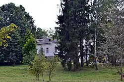 Wnętrze stanowiło kilkanaście pokoi, w układzie dwutraktowym, amfiladowym. Biblioteka, licząca w 1914 roku 3 tysiące tomów, została całkowicie rozgrabiona w czasie I wojny światowej. Dom był otoczony kilkunastohektarowym starym parkiem z wiekowymi lipami i modrzewiami tworzącymi aleje. Przed i za domem znajdowały się wielkie, koliste gazony. Dalsza od domu część parku była utrzymywana w stanie półdzikim. W parku, między domem a rzeką, znajdował się duży i malowniczy staw, pokryty latem nenufarami[4].