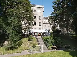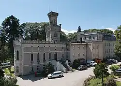 Pałac w stylu neogotyckim, wzniesiony w 1896, zachował w swojej bryle dwór z 1550, zbudowany przez probostwo oo. augustianów w Kłodzku w stylu renesansowym. Do czasów współczesnych ocalał piękny renesansowy portal z kartuszem herbowym augustianów wykonany przez Georga (Jerzego) Daniela, sklepienia w części z pomieszczeń, ślady dekoracji sgraffitowych na elewacji i kaplica dworska pw. Niepokalanego Poczęcia NMP. Obecna budowla składa się z trzech części: korpusu głównego z wieżą podobną do wieży florenckiego ratusza, skrzydła z kaplicą i łącznika. Całość otacza park otoczony płotem. Obecnie w pałacu mieści się dom opieki społecznej.