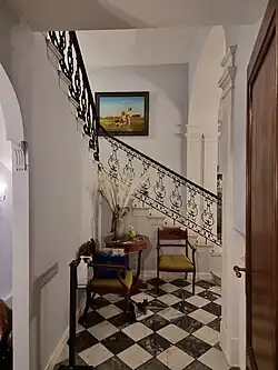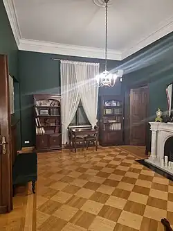 W wyniku często zmieniających się kolejnych właścicieli, wnętrza pałacu ulegały przebudowie; do czasów współczesnych zachował się m.in. hol ze ścianami rozczłonkowanymi pilastrami toskańskimi[6]. W pałacu pomieszczenia podzielone są na: salę główną, salę kredensową, bibliotekę, salę kominkową i salę granatową[7].