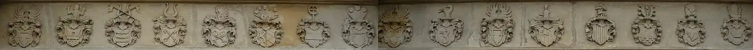 - fryz prawy herby ojca Sabine (od lewej): 1. Albrechta von Zedlitz, 2. von Nimpsch, 3. von Zedlitz, 4. von Wlassaty,