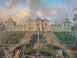 Prace wykończeniowe prowadził Johann Heinrich Roth (1729–1780). Sala Ogrodowa na pierwszym piętrze jest ozdobiona żółtym i zielonym marmurem, a jej ściany podzielone są pilastrami. Plafon jest dziełem Carlo Carlone (1686–1775).