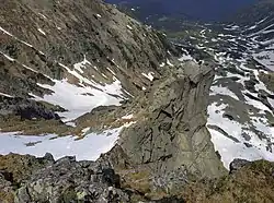 ![]() Pańszczycka Turnia i jej południowo-wschodnia ściana – widok z Pańszczycy | |