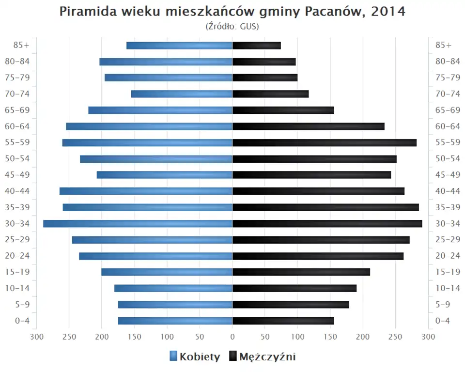 - Piramida wieku mieszkańców gminy Pacanów w 2014 roku[1].