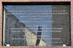 ![]() Tablica poświęcona cywilnej ludności Mokotowa – mordowanej i wypędzanej przez Niemców w trakcie powstania warszawskiego | |