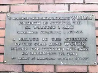 ![]() Pomnik poległych górników KWK „Wujek” (2018) | |