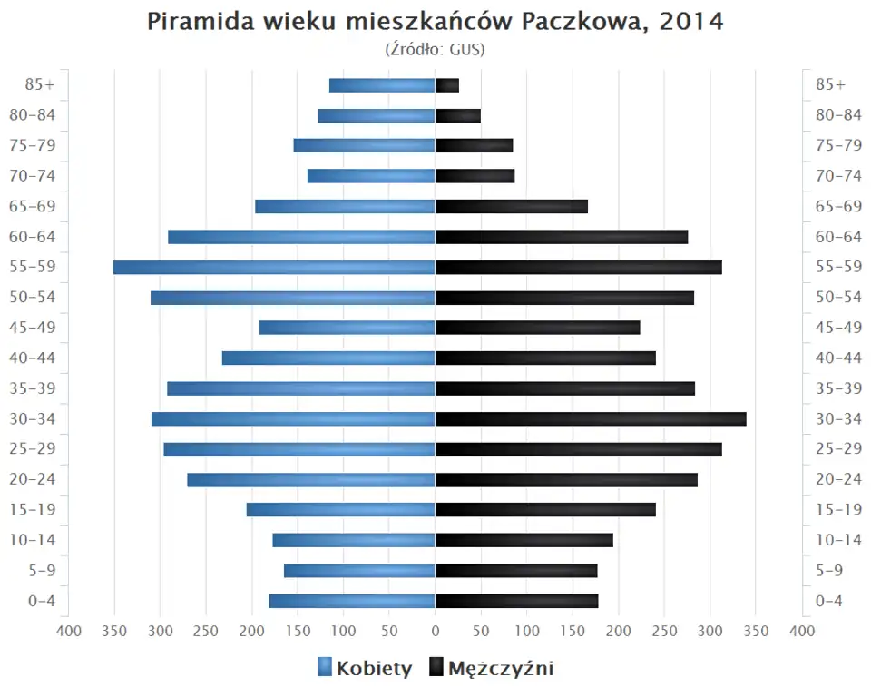 - Piramida wieku mieszkańców Paczkowa w 2014 roku[27].