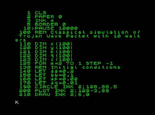 gdzie a jest punktem minimum potencjału części hamiltonianu zależnej od współrzędnej radialnej i dlatego promieniem orbity klasycznej. Ponieważ potencjał radialny ma minimum paczka trojańska jest w tej teorii iloczynem dobrze zlokalizowanej radialnej funkcji Gaussa i dobrze zlokalizowanego wzbudzonego stanu wahadła matematycznego, odpowiadającej stanowi wahadła odwróconego do góry będącego funkcją Mathieu o wartości charakterystycznej (i energii) równej w dobrym przybliżeniu Bardziej dokładna teoria pokazuje, że jest to wahadło o ujemnej masie równej –1/3 masy elektronu i dlatego jest to jego stan podstawowy o takiej samej energii w odwróconym spektrum.