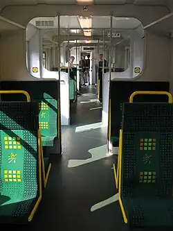 Wszystkie wagony są jednoprzestrzenne i wyposażone w wiatrołapy[2]. 164 siedzenia są plastikowe i ustawione w układzie grupowym[2]. W pojeździe nie ma toalety[9]. Okna w części pasażerskiej są podzielone na dwie części – dolna jest większa i zapewnia lepszą widoczność, górna natomiast to uchylny lufcik[2].