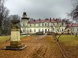 ale wkrótce po I wojnie światowej rząd litewski rozparcelował majątek, pałac i folwark upaństwowił i przekazał je jezuitom, którzy przebywali tu do 1940 roku[2][3][4][5][6].