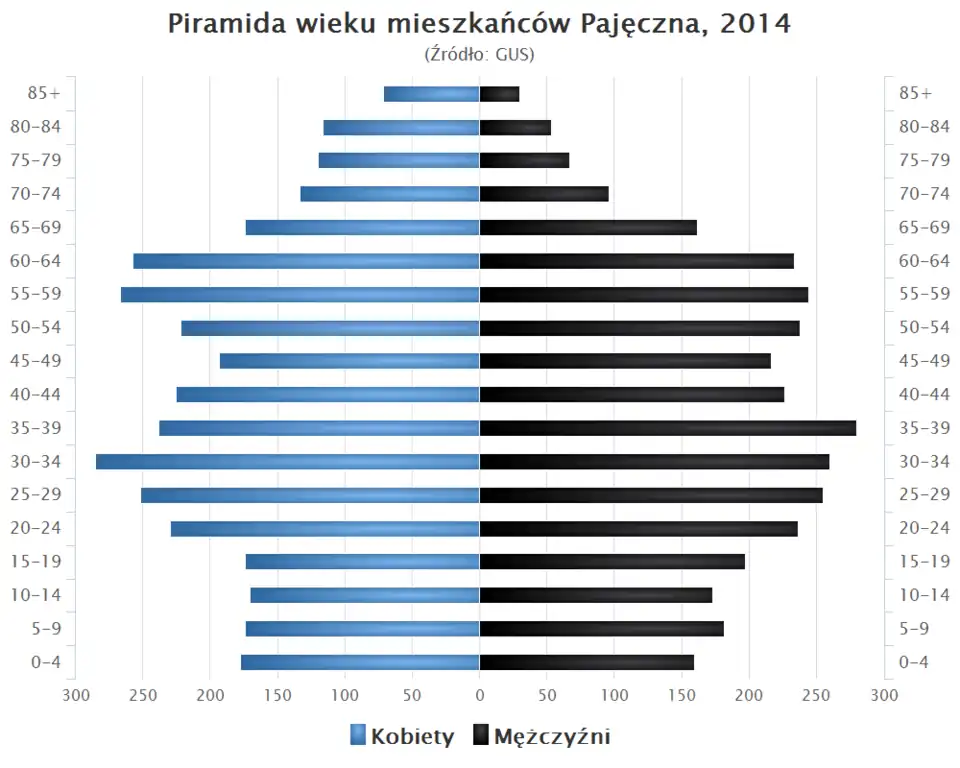 - Piramida wieku mieszkańców Pajęczna w 2014 roku[13].