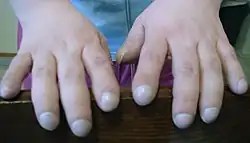 Pałeczkowatość palców, inaczej palce pałeczkowate, palce Hipokratesa[1] lub pałeczki dobosza (ang. clubbing, clubbed fingers) – objaw chorobowy polegający na zwiotczeniu łożysk paznokci i pogrubieniu dystalnych paliczków. Wiąże się z występowaniem tzw. paznokci zegarkowych (nazwanych tak z powodu wypukłości i zaokrąglonego kształtu przypominającego szkło chroniące tarczę zegarka). Bezpośrednią przyczyną palców pałeczkowatych jest zazwyczaj niedotlenienie peryferyjnych części ciała (w tym paliczków). Niektóre pośrednie przyczyny pałeczkowatości palców to[1]: