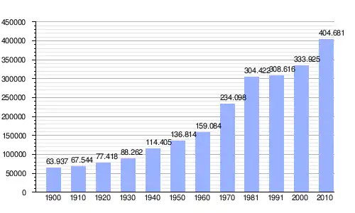 - Rozwój demograficzny centrum administracyjnego Palmy w latach 1900−2010