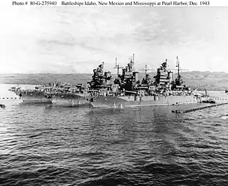 W związku z narastającym zagrożeniem ze strony Niemiec, okręty te zostały w 1941 roku przesunięte z Pacyfiku na Atlantyk, w następstwie czego zmienił się stosunek sił floty japońskiej do Floty Pacyfiku. Po ataku na Pearl Harbor, który znacznie nadwerężył amerykańskie siły, pancerniki typu New Mexico wróciły na Pacyfik i brały udział w konflikcie z Japonią do końca. Ich ciężkie działa zapewniały wsparcie artyleryjskie w wielu operacjach desantowych, a "Mississippi" wziął udział w bitwie w cieśninie Surigao – ostatnim starciu w historii, kiedy to pancerniki walczyły między sobą. "New Mexico" i "Idaho" zostały wycofane ze służby niedługo po wojnie, natomiast "Mississippi" został przerobiony na okręt szkolny i testowy i służył jeszcze aktywnie przez dekadę. Pierwsza generacja rakiet kierowanych, wystrzeliwanych z okrętów, mających zastąpić działa okrętowe, po raz pierwszy wyszła w morze na pokładzie tego właśnie okrętu.