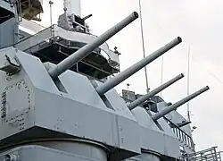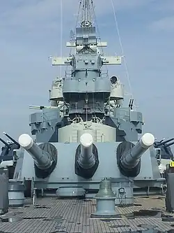 W przeciwieństwie do brytyjskiej praktyki, na okrętach amerykańskich rzadko wszystkie trzy działa wieży strzelały jednocześnie, były bowiem niezależnie od siebie odpalane[14]