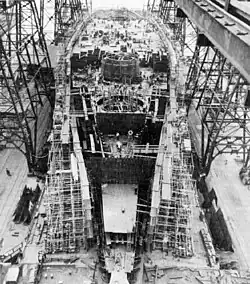 - ↑ Decyzja o przyznaniu kontraktów tym dwóm stoczniom wywołała oburzenie i naciski na prezydenta, zwłaszcza ze strony będącej w trudnej sytuacji finansowej z powodu braku zamówień komercyjnych, prywatnej stoczni New York Shipbuilding[7].