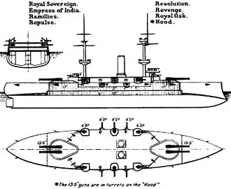 W skład serii wchodziło siedem okrętów, w których działa artylerii głównej były umieszczone w barbetach: „Royal Sovereign”, „Empress of India”, „Repulse”, „Ramillies”, „Resolution”, „Revenge” i „Royal Oak”. Ósmy okręt – „Hood” miał artylerię główną umieszczoną w wieżach.