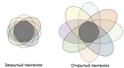 - Zamknięty pangenom: w tym przypadku dodanie nowych genomów nie doprowadzi do odkrycia nowych możliwości kodowania[4]. Sekwencjonowanie genów nowych szczepów nie dostarczy nowych genów do pangenomu. Pangenom zamknięty jest typowy dla gatunków żyjących w izolowanych niszach z ograniczonym dostępem do globalnej puli genów drobnoustrojów. W przypadku tych gatunków niewielka liczba zsekwencjonowanych szczepów obejmuje już cały pangenom. Przykład: Bacillus anthracis[6].