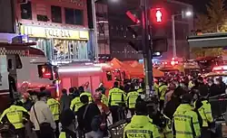 - ↑ ‘Something terrible is happening’: Scenes of horror in Seoul after Halloween stampede | The Straits Times [online], www.straitstimes.com, 30 października 2022 [dostęp 2022-10-30] (ang.).