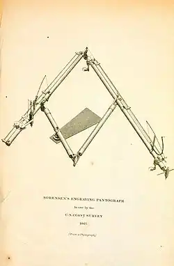 Pantograf wynaleziony został w 1603 roku. Składa się z szeregu prętów w układzie równoległobocznym połączonych przegubowo w sposób ułatwiający zmianę długości poszczególnych ramion. W wojsku stosowany jest w kartografii przy sporządzaniu w określonej skali planów i map oraz do nauki prawidłowego celowania[3].