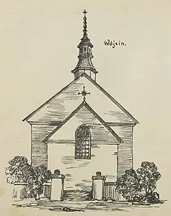 - Pierwotny kościół drewniany pw. św. Andrzeja, fundacji cystersów sulejowskich, i parafia powstały przed 1478. Kolejny kościół, także drewniany, pochodził z XVI w. Obecna świątynia zbudowana została w latach 1825–1826 z fundacji Wacława i Anny Glasserów. Kościół powiększono staraniem ks. Piotra Górskiego w 1881 o prezbiterium, zakrystię, skarbczyk, kruchtę i kaplicę północną. Został on znacznie zniszczony podczas I wojny światowej, a następnie odbudowany staraniem ks. Feliksa Pomorskiego. Konsekracji świątyni dokonał 17 września 1927 bp. Paweł Kubicki. Kościół jest jednonawowy, orientowany, wzniesiony z kamienia na rzucie prostokąta.