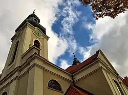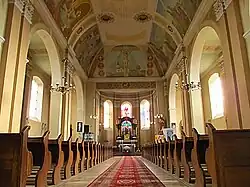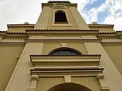 Wzniesiony z czerwonej cegły z Sucumina, tynkowany kościół powstał w stylu neobarokowym i posiada wymiary: