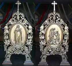 Po I wojnie światowej wykonano cztery feretrony, które są używane do dziś: pierwszy z wizerunkami św. Stanisława Kostki przyjmującego komunię od anioła na jednej oraz obrazem św. Teresy od Dzieciątka Jezus na drugiej stronie, drugi z chrztem Jezusa w Jordanie z jednej i Matką Bożą Częstochowską z drugiej strony, trzeci ze św. Antonim z Dzieciątkiem Jezus na ramieniu z jednej strony oraz Najświętszym Sercem Jezusa z drugiej, wreszcie czwarty z Matką Bożą Częstochowską oraz św. Bartłomiejem. W 1920 wykonano najstarszą do dziś zachowaną chorągiew poświęconą św. Kazimierzowi. W 1926 powstał proporzec strażacki z Orłem Białym i św. Florianem. W 1937 wykonano chorągiew Katolickiego Stowarzyszenia Kobiet[2].