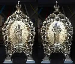 - ↑ Ewa Chomentowska, Wezwania maryjne kościołów parafialnych oraz parafii na tle patrociniów w diecezji łomżyńskiej, [w:] Barbara Kalinowska, Katarzyna Mróz (red.), Zwykli niezwykli. Kult świętych w diecezji łomżyńskiej. Katalog wystawy, Ostrołęka 2016, s. 28.