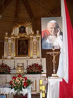 Prymas Józef Glemp sprawujący Eucharystię w Świętym MiejscuKrzyż Jana Pawła II w Świętym MiejscuRelikwie Krwi Jana Pawła II w Świętym Miejscu