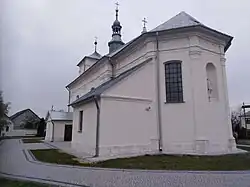 W niedalekiej odległości od świątyni znajduje się murowana plebania z początku XX wieku.