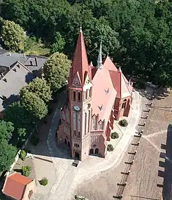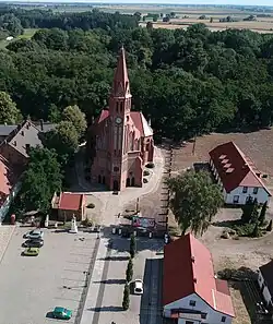 Parafialny kościół pod wezwaniem św. Wawrzyńca został wybudowany w latach 1908–1910[1][2].