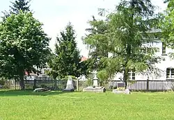Na końcu ulicy Cmentarnej znajduje się dawna brama na cmentarz przykościelny. Po jej przejściu i skręceniu w lewo w alejkę, natrafimy na nagrobki księży z parafii: Andrzeja Michałowskiego, dziekana Bolesława Antoniewicza oraz Jana Szmańdy – dziennikarza.