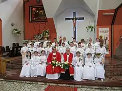 - Konsekracja kościoła miała miejsce 25 sierpnia 1991 roku. Dokonał jej ksiądz biskup Marian Przykucki.