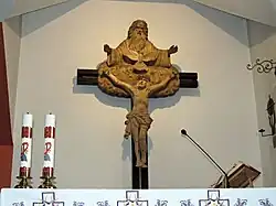 W 2014 roku, w prezbiterium nad ołtarzem głównym, została umieszczona rzeźba Trójcy Świętej, w miejscu, w którym wcześniej znajdował się wielki krzyż z ukrzyżowanym Jezusem. Rzeźba została wykonana z drewna lipowego, przez znanego na Pomorzu rzeźbiarza w drewnie i kamieniu, Ryszarda Prilla.