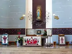 Stary kościół został przebudowany w 1975 r. według projektu inż. Mariana Szymanowskiego. Na głównej ścianie został umieszczony duży artystyczny Krucyfiks Chrystusa zaprojektowany i wykonany przez Jerzego Macha w 1973 r. Z prawej strony umieszczona była figura M.B. Niepokalanej z Lourdes - Patronki kościoła i parafii, otaczana szczególną czcią wiernych a sprowadzona z Lourdes jeszcze w czasie budowy kościoła w 1935 roku. Ściany kościoła zdobiły rzeźby Drogi Krzyżowej wykonane przez artystkę Zofię Trzcińską-Kamińską w 1962 r., oraz obraz Miłosierdzia Bożego, wykonany przez Jana Molgę w 1955 r.