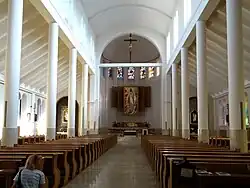 Kościół parafialny został zbudowany w stylu neoromańskim, na wzór bazylik wczesnochrześcijańskich, ma trzy nawy. Budowa, z dużymi przerwami, trwała od 1936 do 1964 r.