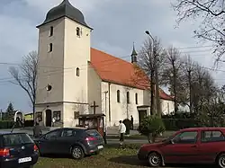 Pierwsza wzmianka o kościele parafialnym datowana jest na rok 1301. Kościół należał do Krzyżowców z czerwoną gwiazdą i był duszpastersko przez nich obsługiwany aż do czasów sekularyzacji, czyli do 1810 roku. Kościół ten miał wymiary 15 metrów x 7,5 metra, posiadał przybudowaną drewnianą wieżę na dzwony, a na dachu kościoła znajdowała się wieżyczka na sygnaturkę. Sufit kościoła był częściowo falisty, a częściowo prosty. Na ścianach znajdowały się stare malowidła. Ten kościół został zburzony, a na jego miejscu postawiono w latach 1799–1801 nowy, masywny i murowany. W 1818 roku wybudowano plebanię, która do dzisiaj służy mieszkającym tam proboszczom i społeczeństwu wsi. W 1932 roku kościół został rozbudowany, gdzie większość prac budowlanych przeprowadzali ówcześni specjaliści z Kluczborka. Poświęcenie wyremontowanego kościoła nastąpiło 23 maja 1932 roku. W grudniu 1934 roku zostały zamontowane nowe organy, natomiast w 1935 roku prospekt organowy został ozdobiony. Następny gruntowny remont kościoła, wraz z jego malowaniem, odnowieniem ołtarzy, gruntownym remontem organów został przeprowadzony w latach 1993–1995. Całkowicie wymieniono wtedy dachówkę na dachu kościoła, założono miedziane rynny, opierzenia a wieżę i wieżyczkę pokryto blachą miedzianą.
