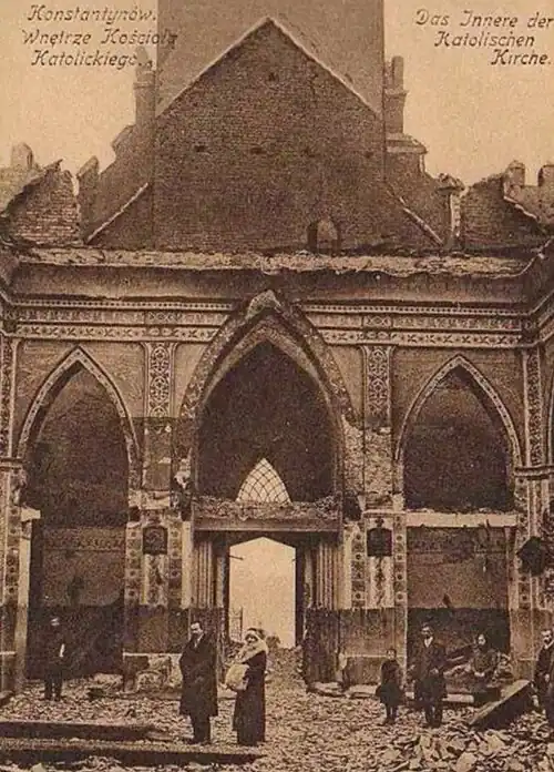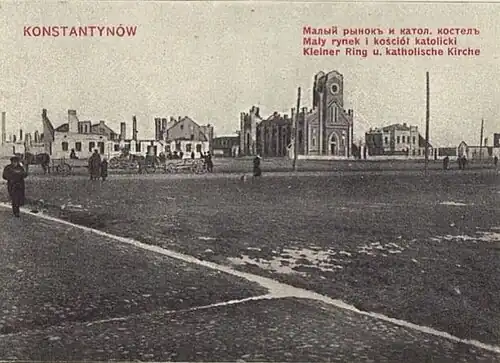 Na gruntach istniejącej już w XIV wieku wsi Żabice Wielkie jej właściciel, Mikołaj Krzywiec-Okołowicz założył w 1821 roku tkacką osadę, dla której postarał się o nazwę Konstantynów na cześć wielkiego księcia Konstantego, brata carów Aleksandra I i Mikołaja I. Szybko rozwijająca się osada otrzymała w 1830 r. prawa miejskie, które jednak utraciła w 1870 r.; odzyskał je Konstantynów w 1924 r. Wydział Powiatowy w lutym 1929 r. zwrócił się do Rady Miejskiej z sugestią zmiany nazwy miasta „dla zatarcia śladów okresu niewoli", ale radni działań nie podjęli. Właściciel osady i jego żona ufundowali w Konstantynowie w latach 1826-1832 jednonawowy kościół w stylu neogotyckim zaprojektowany przez włoskiego architekta Boloniniego. Początkowo kościół pełnił rolę kaplicy filialnej należącej do parafii w Kazimierzu. Wszelkie sprawy związane z duszpasterstwem konstantynowian załatwiał proboszcz z Kazimierza. Od 1841 r. opiekę nad kościołem przejęli ojcowie reformaci z klasztoru w Lutomiersku i zaprowadzili odrębne księgi metrykalne dla Konstantynowa. Każdy ksiądz opiekujący się wówczas katolikami w tym mieście musiał dobrze władać także językiem niemieckim, aby głosić nauki i spowiadać licznych wtedy osadników niemieckich.