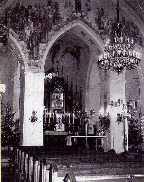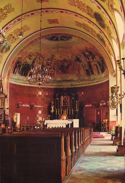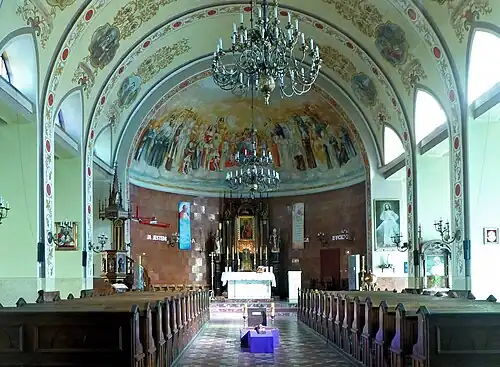 Wnętrze nawy głównej zdobi polichromia z 1984 r. namalowana przez Mieczysława Saara i odnowiona w 1997 przez Józefa Kałużę. Organy dziesięciogłosowe z 1928 roku, staraniem ks. Jerzego Spychały i Społecznej Rady Rozbudowy Organów, zostały rozbudowane w 2004 roku do dwudziestoczterogłosowych.