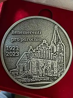 W 2023 z okazji jubileuszu 100-lecia parafii po raz pierwszy nadane zostało diecezjalne odznaczenie kościelne (medal) (łac. Dobrze Zasłużonemu dla Parafii)[3][4], nawiązujące do przyznawanego duchownym i świeckim w dowód zasług dla Kościoła Katolickiego papieskiego odznaczenia Benemerenti.