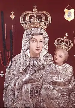 W parafii znajduje się również wizerunek Matki Boskiej Szymanowskiej, ale dla tego wizerunku używane są także nazwy: Matka Boska Różańcowa, Matka Boska Łaskawa, Matka Pocieszenia, Pani Ziemi Szymanowskiej oraz Matka Boska z Dzieciątkiem. Jest to najstarszy, pochodzący z XVII wieku obraz wotywny, który jest w parafii od samego jej początku. Obraz nie był oficjalnie koronowany przez kościelne władze, mimoi to na obrazie umieszczone są złocone korony.