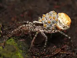 Samice są bardzo troskliwymi matkami: najpierw noszą kokon ze sobą, a później także młode pająki[46][47][3].