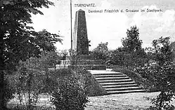 W setną rocznicę odkrycia rudy ołowiu i srebra (16 lipca 1884) na szczycie hałdy odsłonięto 3-metrowy obelisk z piaskowca, na którym umieszczono królewską koronę, godło górnicze i medal z podobizną króla Prus Fryderyka Wielkiego oraz inskrypcję upamiętniającą odkrycie z 1784. Po likwidacji kopalni „Fryderyk”, w 1910 obelisk został przekazany urzędowi Wolnego Miasta Górniczego Tarnowskie Góry i ustawiony na jednej z hałd w Parku Miejskim. W 1930 pomnik został zniszczony przez powstańców śląskich[7][2].