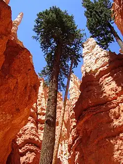 Wreszcie na terenie parku znajdują się liczne tzw. slot canyons. Są to wąskie i stosunkowo głębokie szczeliny skalne. Mają zazwyczaj od 100 do 300 metrów długości, 30 do 60 metrów głębokości i do 5 metrów szerokości. Jednym z najbardziej popularnych jest Wall Street, przez który prowadzi szlak Navajo Loop Trail[8].