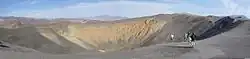 ![]() | Ubehebe Crater to duży krater wulkaniczny o głębokości 237 metrów. Wiek krateru określany jest na ok. 2–7 tysięcy lat. Słowo „ubehebe” oznacza „wielka dziura w skale”. |