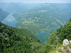 ![]() Kanion rzeki Driny, widok od strony serbskiej w stronę Bośni i Hercegowiny (2017) | |
