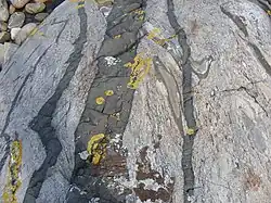 Ciemna dajka dolerytowa i jaśniejszy gnejs na wyspie Ursholmen (2008)