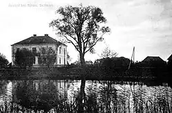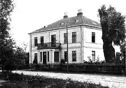 Piętrowy dwór powstał na przełomie XIX i XX wieku. Składał się z korpusu o prostokątnej bryle i odchodzącej od niego prostopadle przybudówki. Narożniki obiektu podkreślały lizeny, a podział pomiędzy parterem i piętrem wyznaczał gzyms kordonowy. Główne wejście opatrzone było werandą z tarasem ogrodzonym balustradą, nad którym znajdowała się płaskorzeźba Matki Bożej z Dzieciątkiem Jezus w formie tonda. Obiekt stanowił letnią rezydencję Marii i Mieczysława Waldecków[8]. Po II wojnie światowej mieściła się w nim stacja sanitarno-epidemiologiczna[5]. Budynek został wyeksploatowany i znacznie zniszczony przez państwowych użytkowników. Dwór rozebrano ze względu na zły stan techniczny.